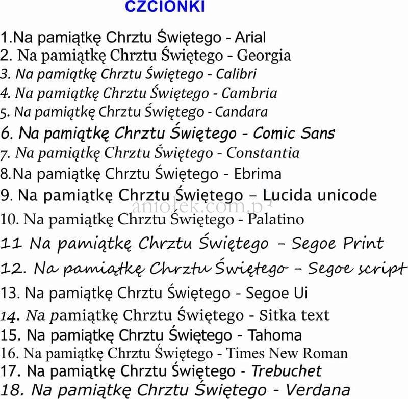 Jeśli wolą Państwo podać własny tekst dedykacji to prosimy o wpisanie go w komentarzu do zamówienia, lub osobnej wiadomości mailowej na adres: kontakt@aniolek.com.pl
