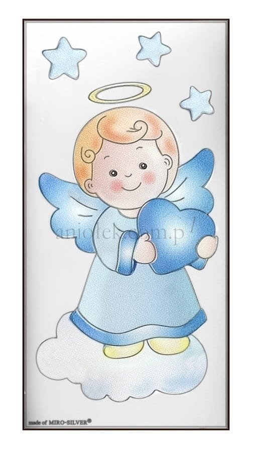 Aniołek niebieski - obrazek srebrzony 5x10 cm