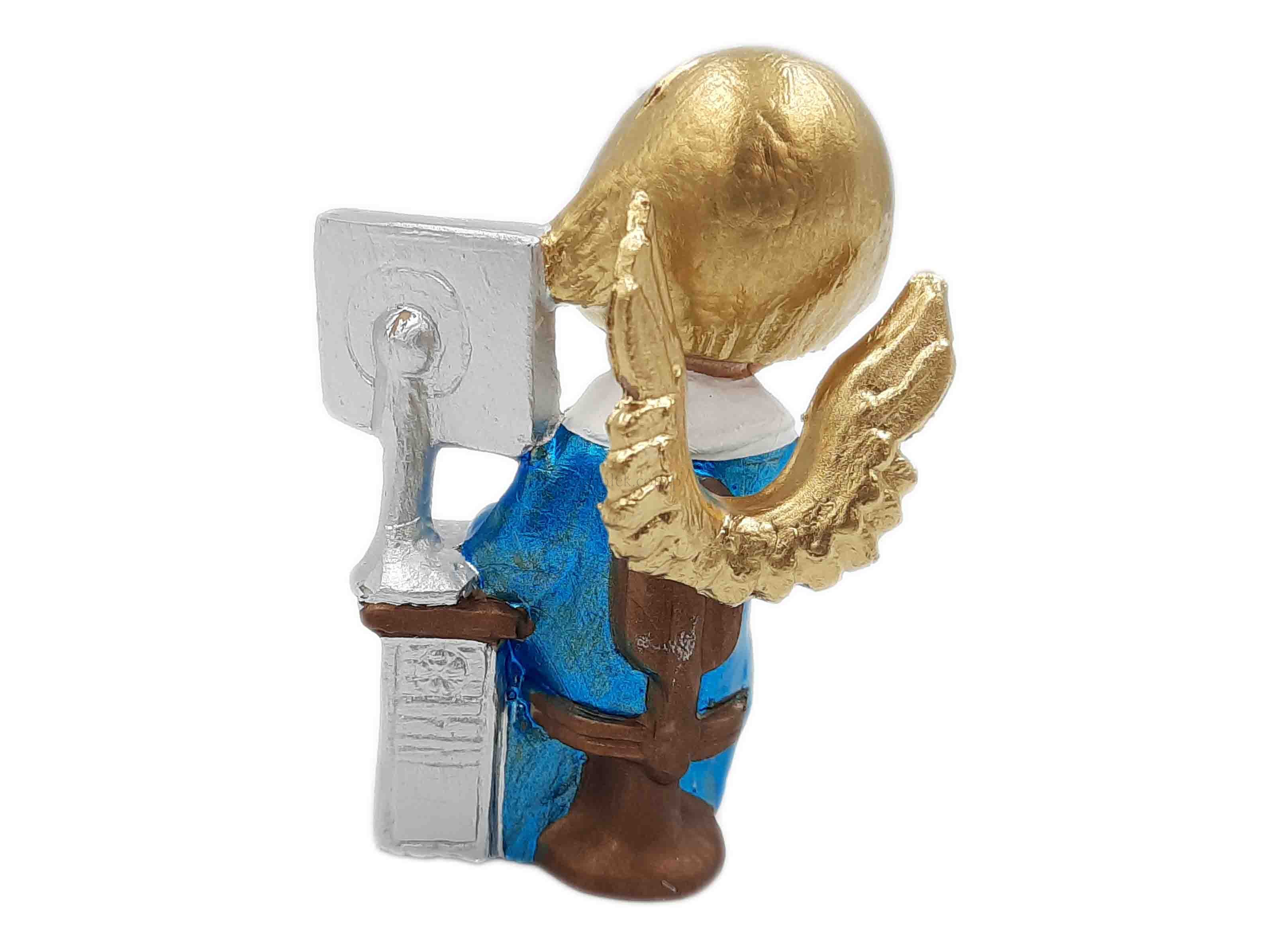 Aniołek wykonany jest z masy żywicznej, ręcznie malowany skupiony na swej pracy nie odrywa rąk od komputera. Jest to wspaniały pomysł na prezent dla osoby, której życie zawodowe lub prywatne nieodmiennie kojarzone jest z przestrzenią wirtualną. Zapraszamy do stworzenia kolekcji figurek wielu zawodów, z pewnością znajdziecie coś dla siebie i swoich bliskich.
