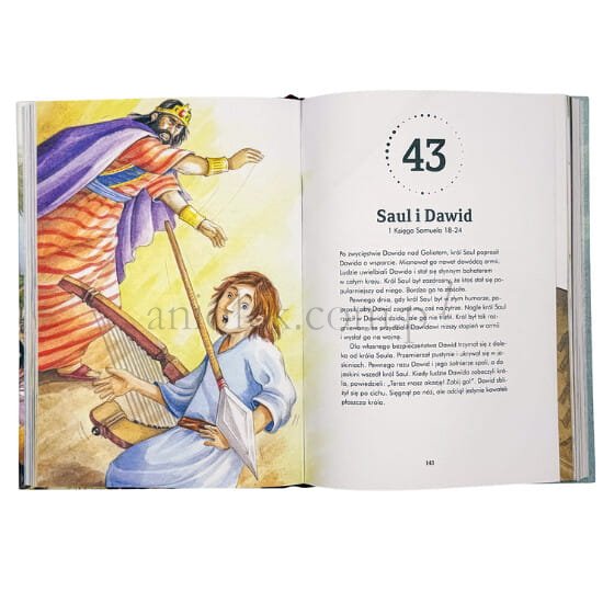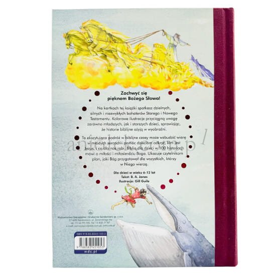 Na kartach tej bogato ilustrowanej publikacji dzieci spotkają dzielnych bohaterów wiary – od Noego i Mojżesza, przez Dawida, aż po Jezusa i Apostołów. Kolorowe, pełne życia ilustracje pobudzają wyobraźnię i pomagają lepiej zrozumieć biblijne wydarzenia.