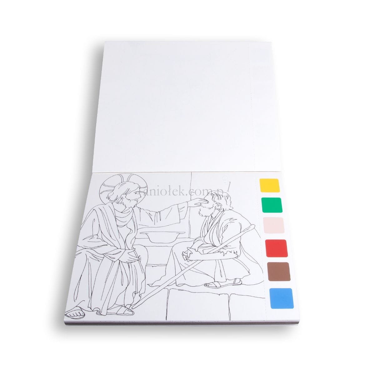 Malowanka zachęca do poznawania Pisma Świętego w sposób przyjazny i ciekawy, jednocześnie rozwijając wyobraźnię i sprawność manualną.