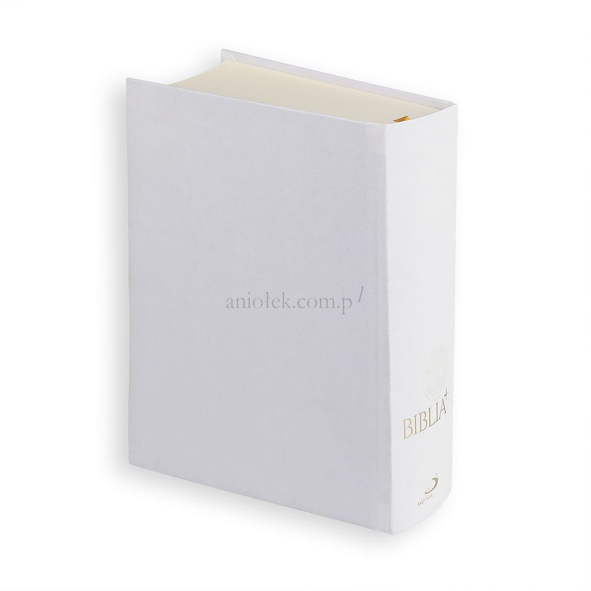 Biblia Plus w eleganckiej białej, płóciennej oprawie to wyjątkowe wydanie Pisma Świętego, które doskonale sprawdzi się jako prezent na Pierwszą Komunię Świętą. Szlachetna, jasna oprawa podkreśla uroczysty charakter tego sakramentu, a bogata zawartość czyni z Biblii towarzysza wiary na całe życie.