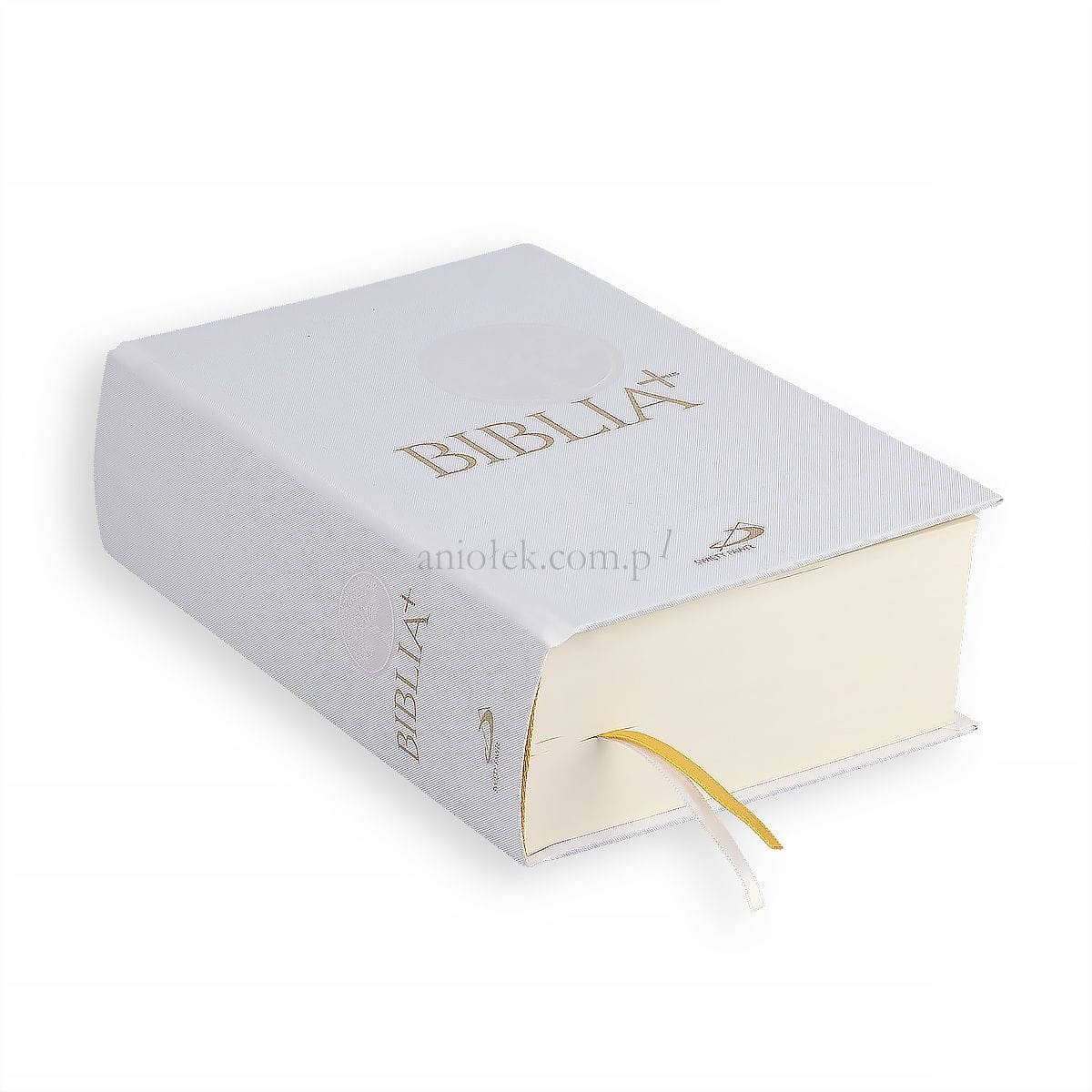 Biblia Plus w białej oprawie to ponadczasowy prezent komunijny, który: