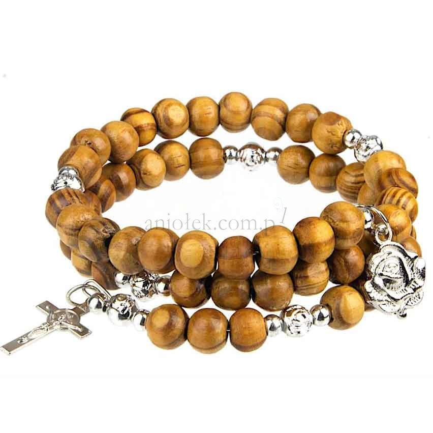 Różaniec w formie bransoletki z drewnianymi koralikami