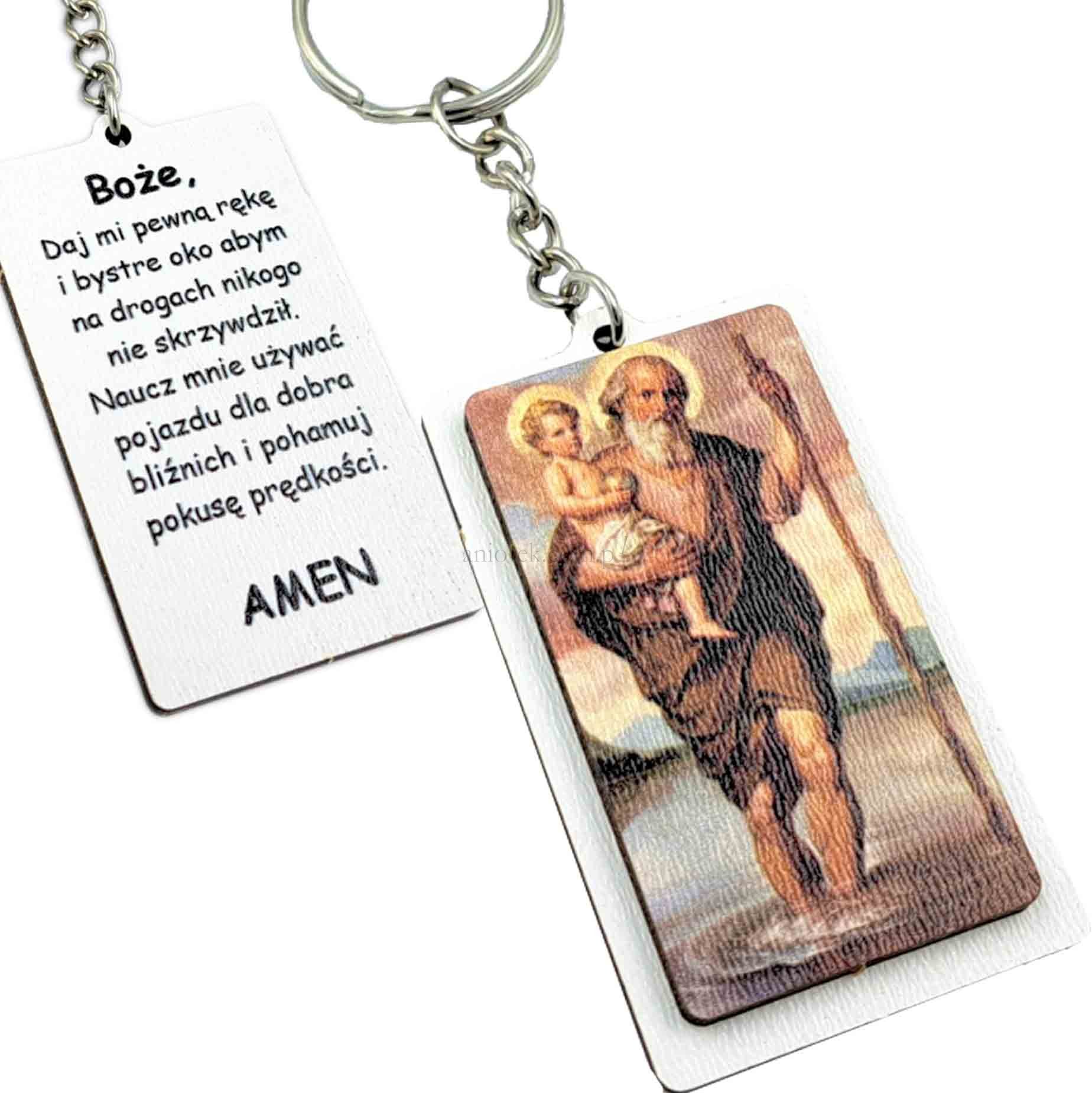 Brelok do kluczy z wizerunkiem Świętego Krzysztofa i modlitwą kierowcy
