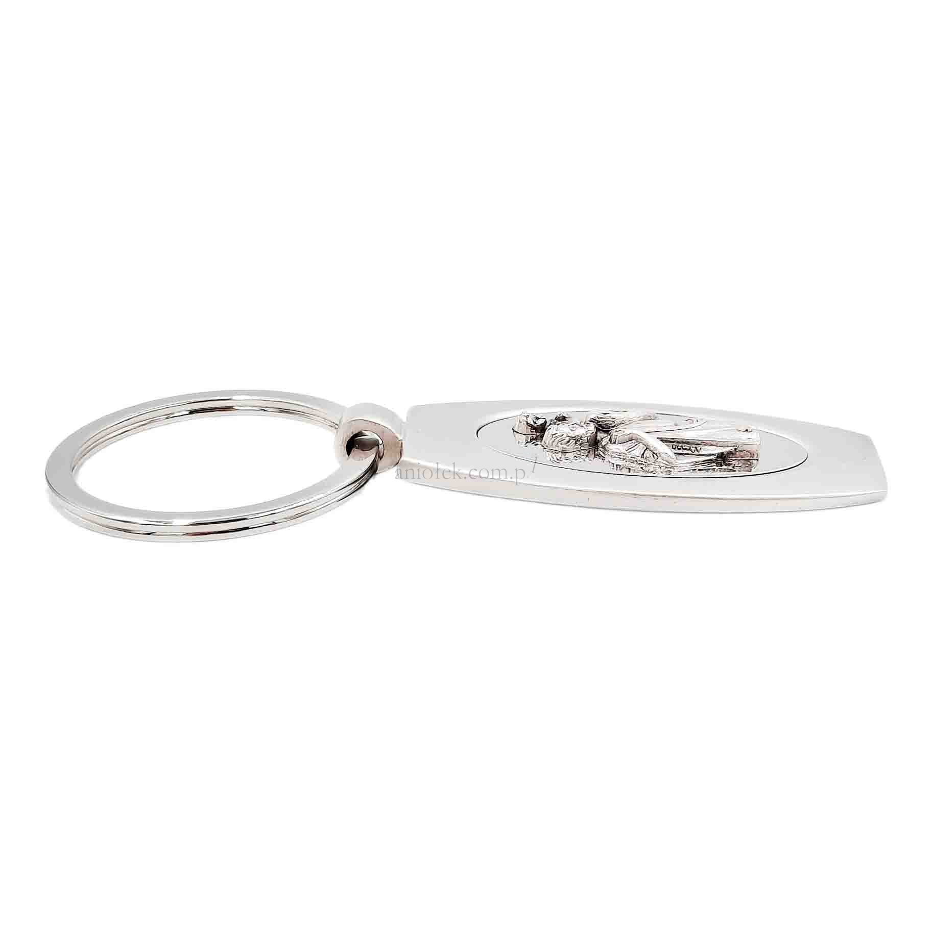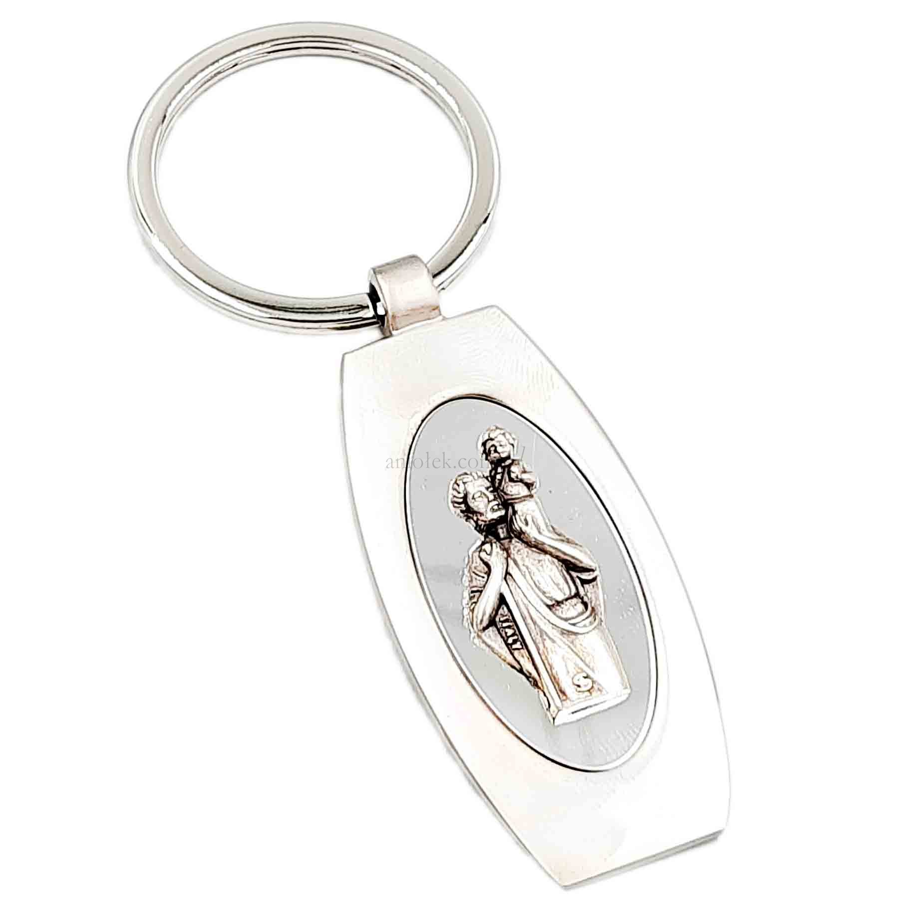 Elegancki brelok do kluczy z wizerunkiem patrona kierowców i podróżnych - Świętego Krzysztofa.