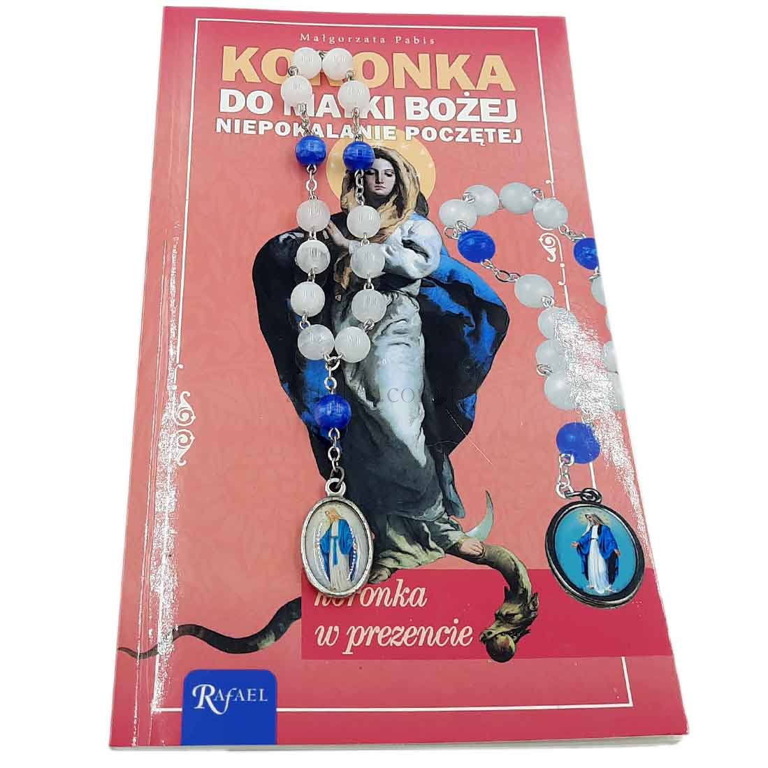 Do książki dołączona została biało-niebieska koronka zakończona kolorowym medalikiem z wizerunkiem Matki Bożej Niepokalanej.