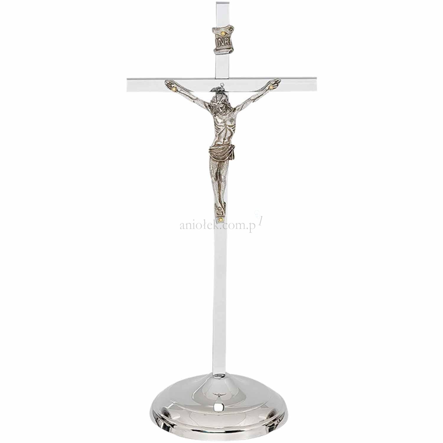 Metalowy krzyż stojący wykonany ze stali nierdzewnej.