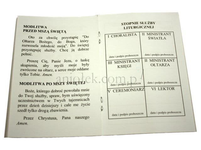 Legitymacja ministranta w formie książeczki.