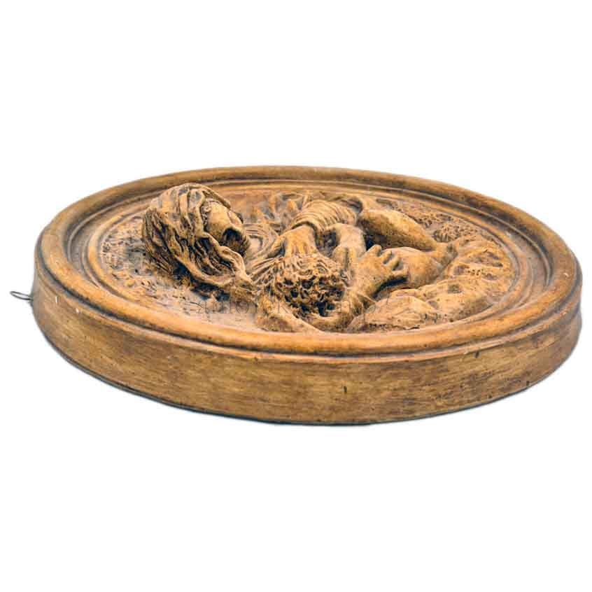 Relief wykonany z wysokiej jakości materiału, w kolorze brązowym, o średnicy ok. 19 cm, utrzymany w klasycznym stylu. To piękna dekoracja do domu, kaplicy lub pokoju dziecięcego. Produkt polskiej produkcji – dopracowany w każdym detalu.