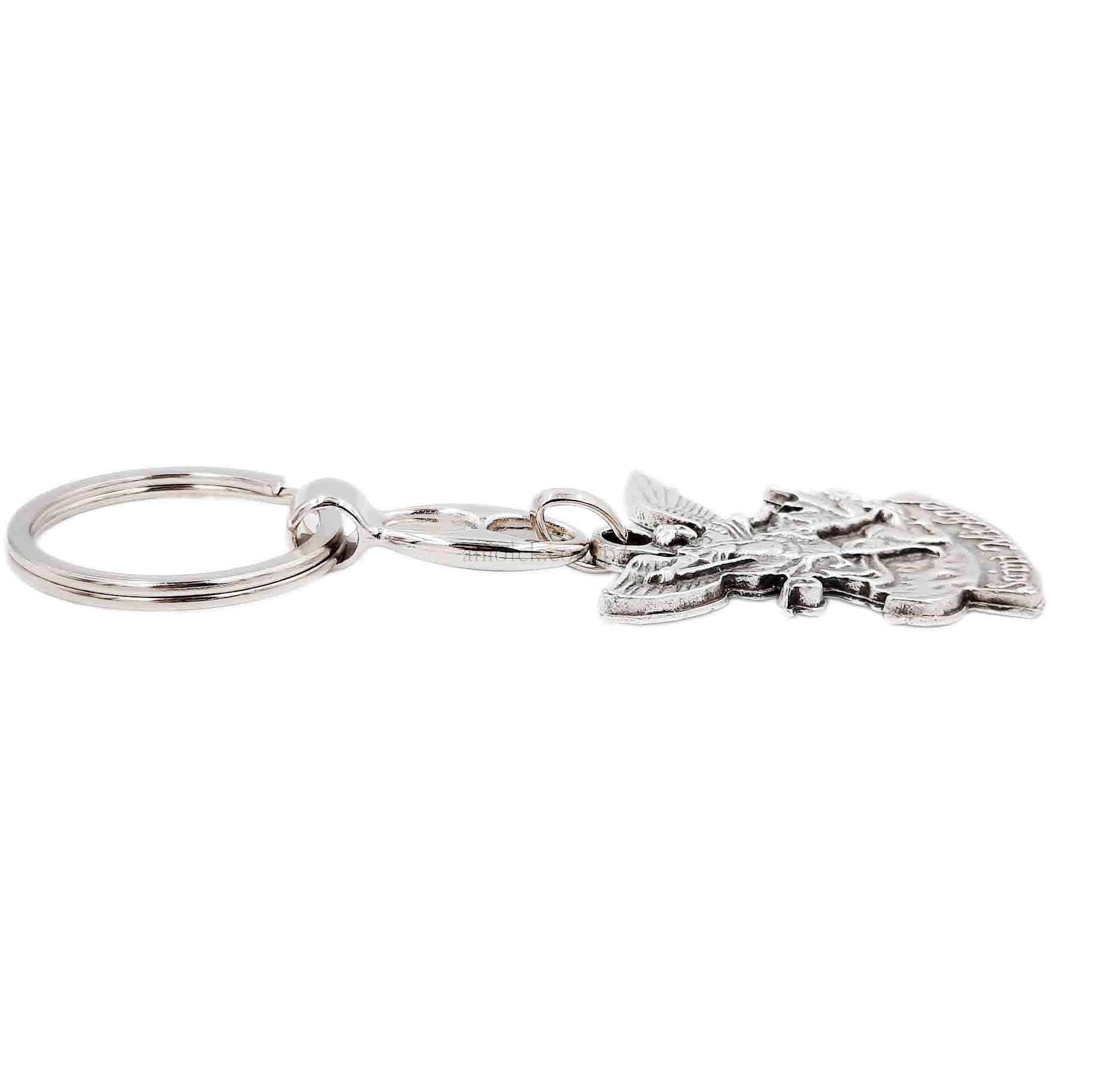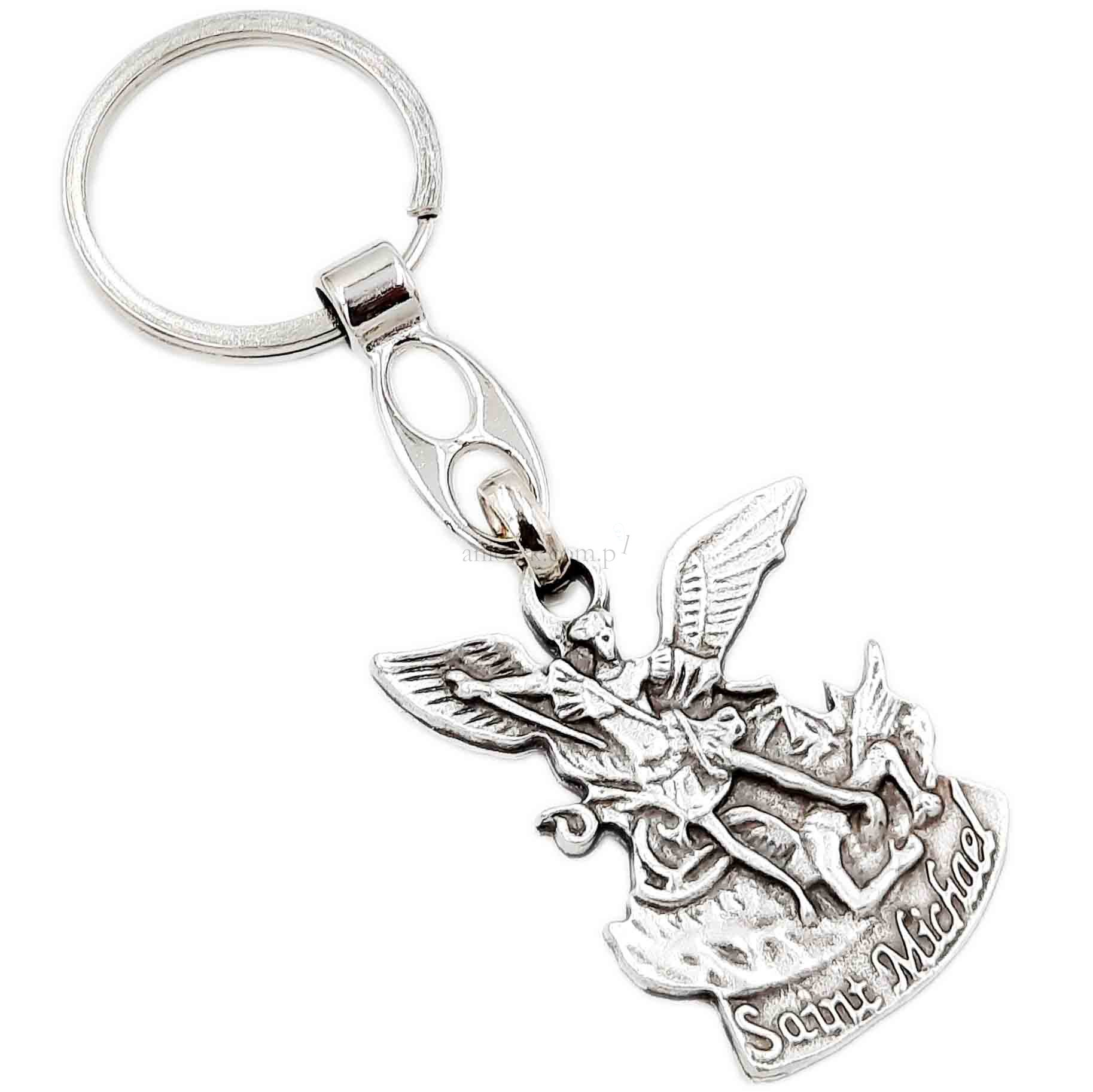 Metalowy brelok do kluczy z wizerunkiem św. Michała Archanioła.