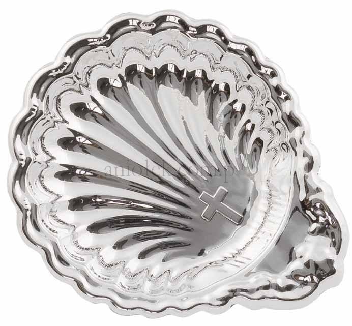 Miseczka na wodę święconą w kolorze srebrnym.