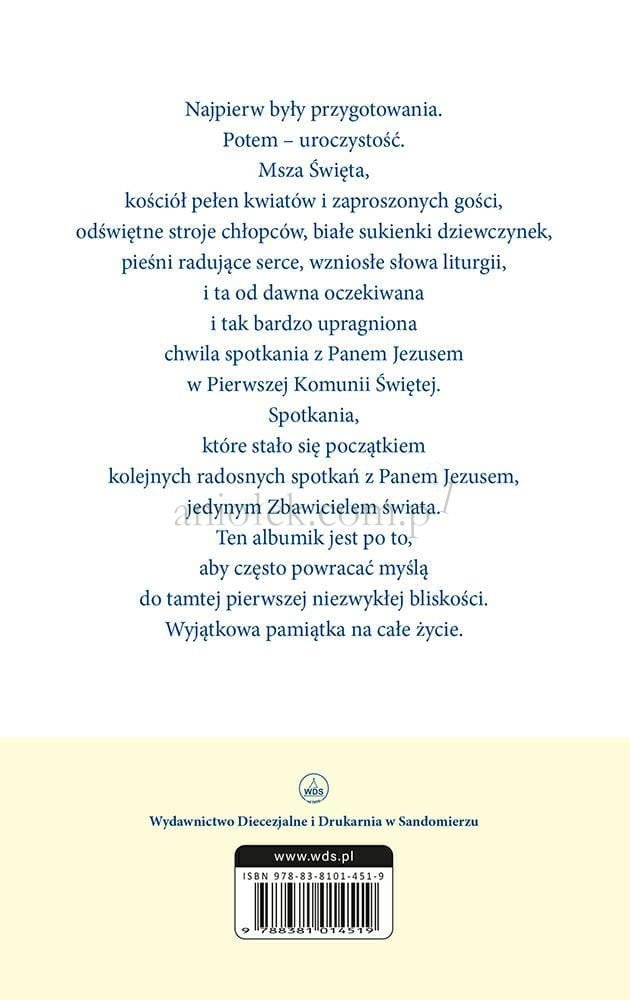 Wyjątkowa publikacja przygotowana z myślą o dzieciach przeżywających jedno z najważniejszych wydarzeń w swoim życiu – Pierwszą Komunię Świętą. To piękna pamiątka, która pomaga zatrzymać wspomnienia z tego szczególnego dnia oraz wracać do nich po latach z radością i wzruszeniem.