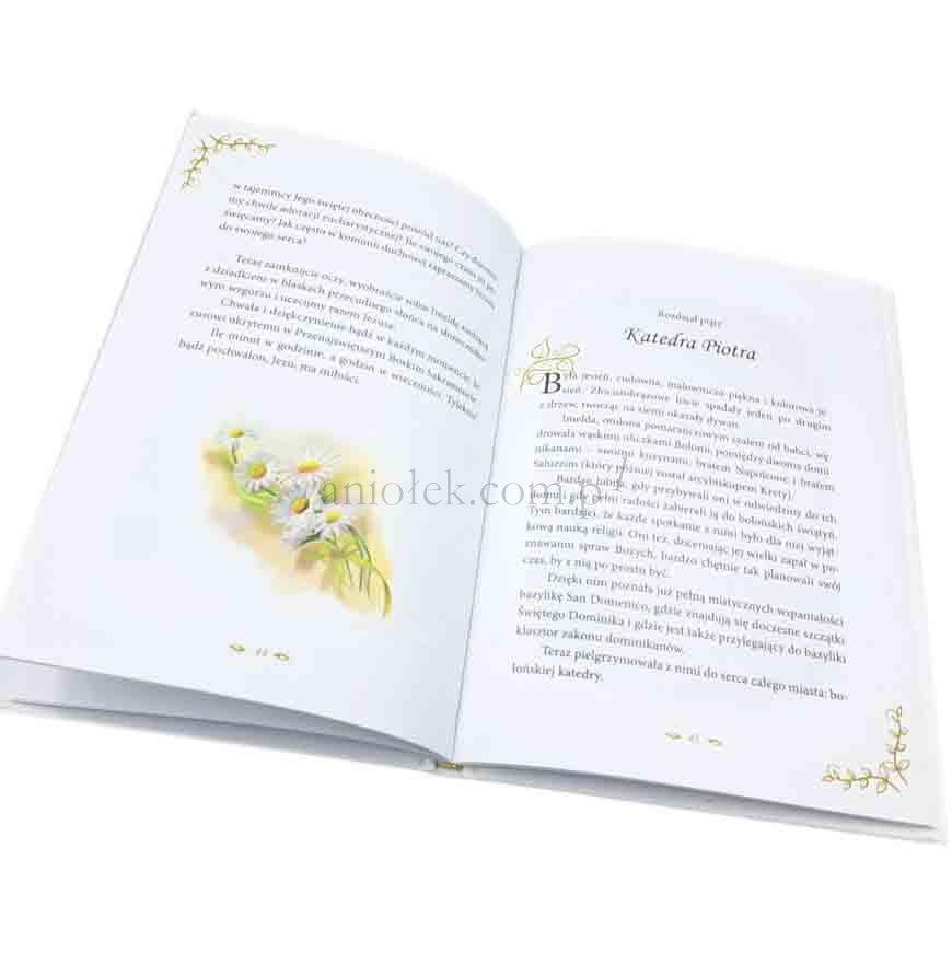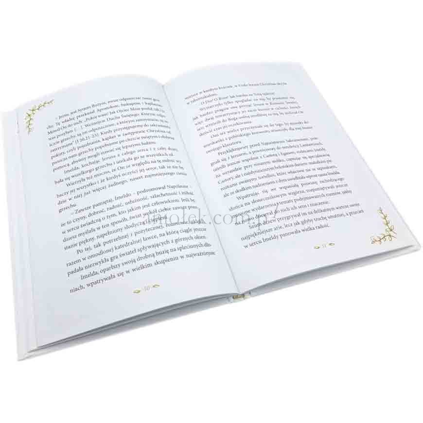 Cieszcie się, trzymając w swoich rączkach tę wspaniałą książkę, która jest darem od tych, którzy Was bezgranicznie kochają. To niezwykła opowieść o Błogosławionej Imeldzie, Patronce dzieci pierwszokomunijnych, Wspomożycielce dzieciństwa oraz tych, którzy tęsknią za Eucharystią. Przeżywając przygody z Imeldą, dowiecie się, jak wielka jest miłość do Jezusa obecnej w Najświętszym Sakramencie.