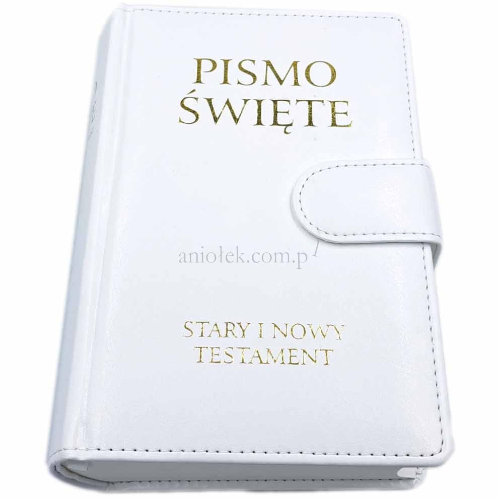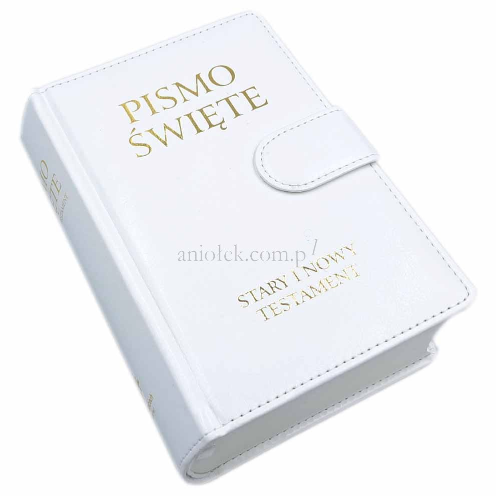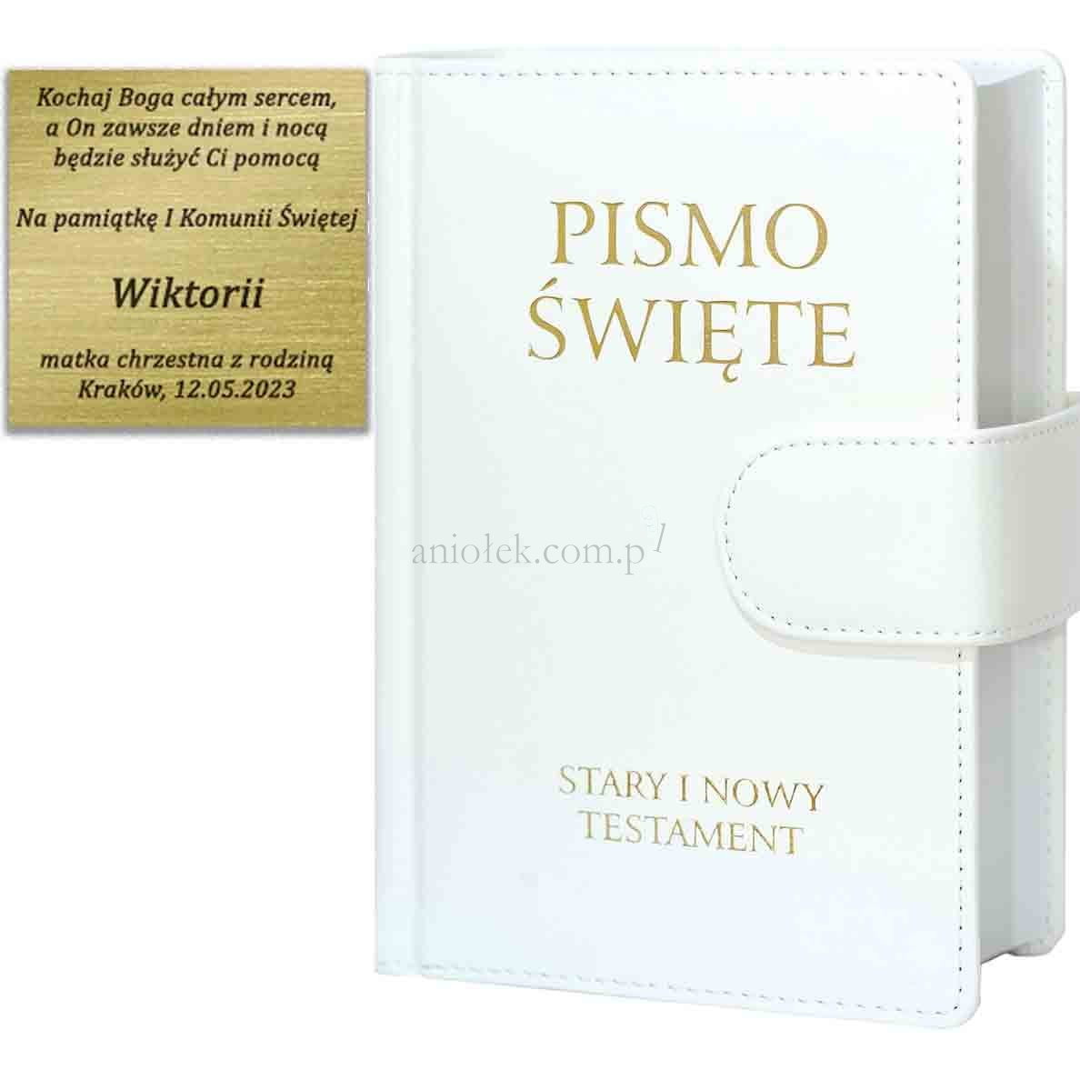 Pismo Święte ST i NT biała ekoskóra + GRAWER