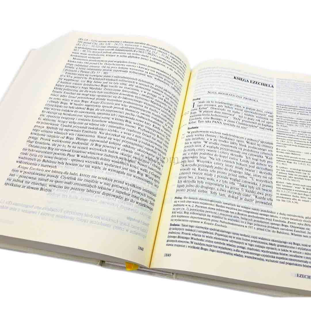 Najnowszy przekład Pisma Świętego z komentarzem, stworzony przez Zespół Biblistów Polskich z inicjatywy Towarzystwa Świętego Pawła. To wyjątkowe wydanie zostało opracowane z myślą o jak najwierniejszym oddaniu sensu oryginalnego tekstu biblijnego w polskim wydaniu. Przekład powstał z dbałością o aktualne badania nad Pismem Świętym, tworząc tekst zredagowany z maksymalną wiernością do oryginału.
