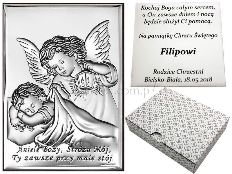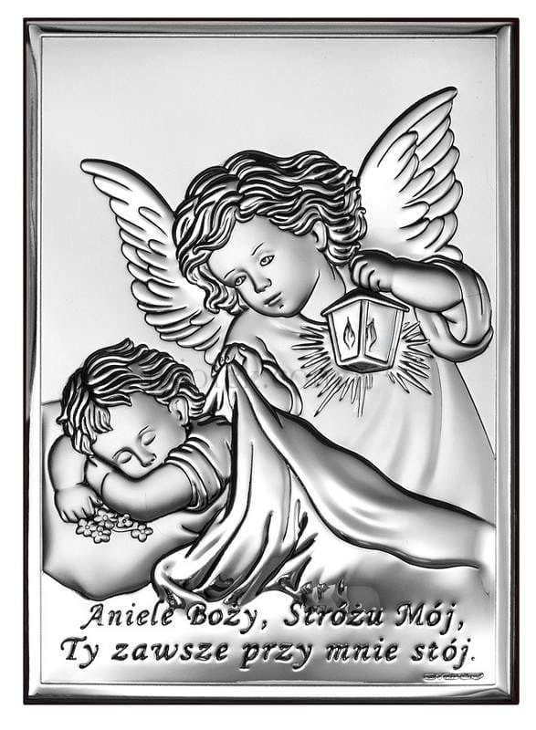 Aniołek Stróż srebrny v27 13x18 cm