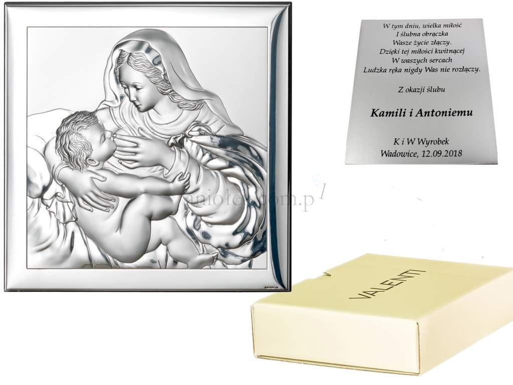 Matka Boska Karmiąca - obrazek srebrny 8x8cm