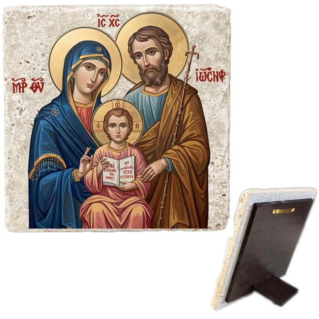 Obrazek z wizerunkiem Świętej Rodziny na kamieniu – 15 × 15 cm