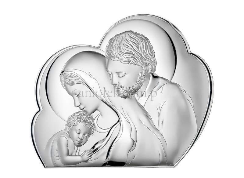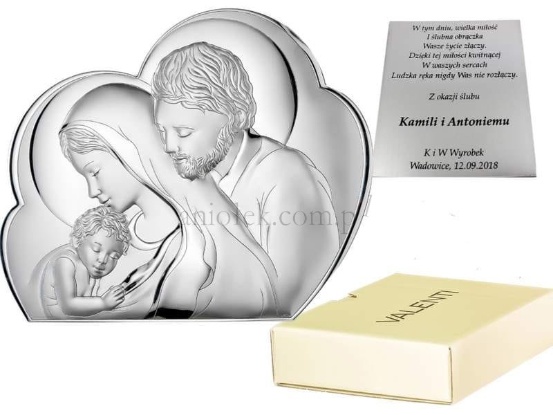 Obrazek srebrny przedstawiający wizerunek Świętej Rodziny.