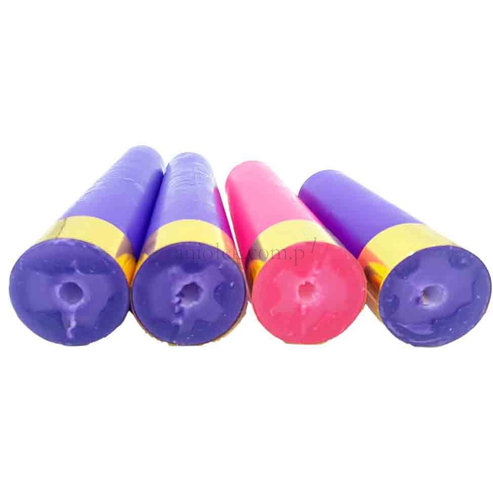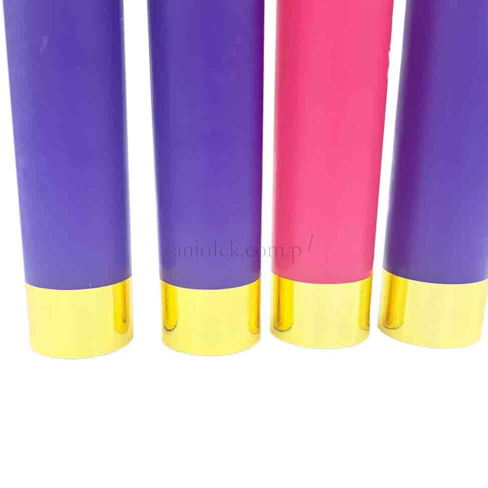 Trzy ze świec prezentują się w głębokim odcieniu fioletu, podczas gdy czwarta świeca w delikatnym odcieniu różu tworzy harmonijną kontrastową kompozycję.