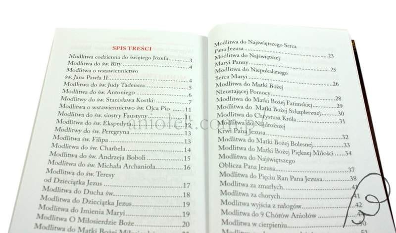 - modlitwy do świętych: św. Rity, św. Antoniego, św. Franciszka, św. Ojca Pio, św. Marty, św. Teresy od Dzieciątka Jezus;